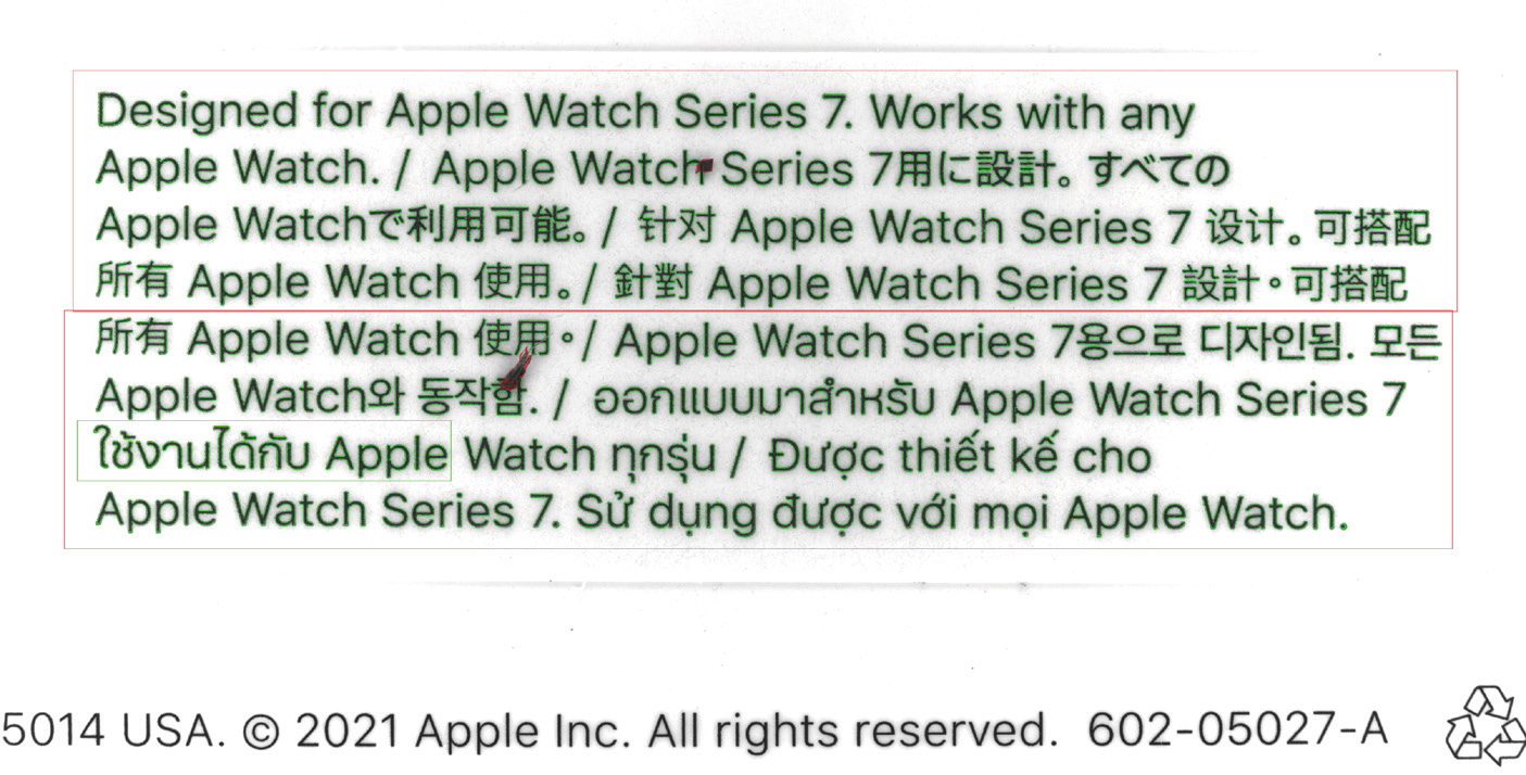 檢測要求:字體多印,少印,字符缺,臟污,字體位偏,字體刮花,多點少點。